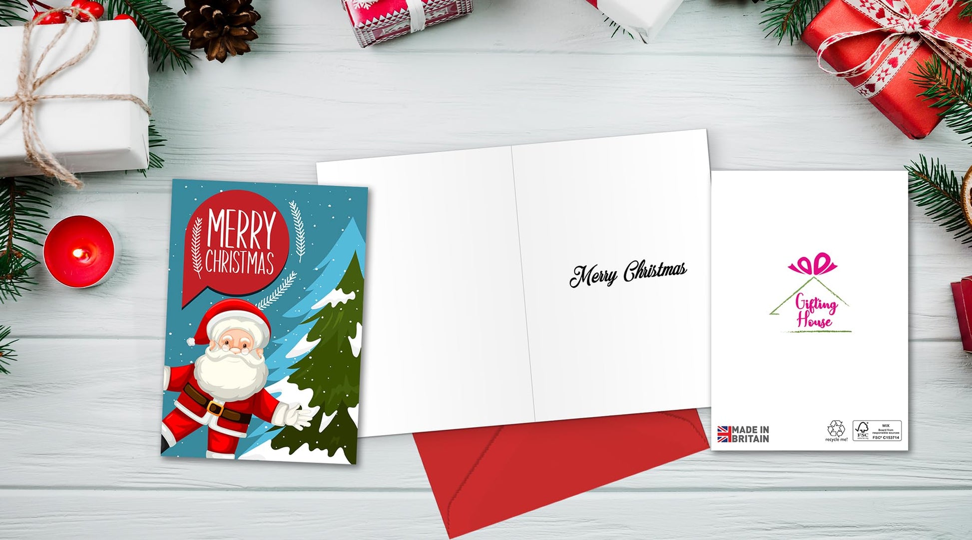 12 Xmas Cards Packs - Christmas Cards Multipack 2024 - Kids Christmas Cards with Red envelopes - Santa Christmas cards - MADE IN UK.