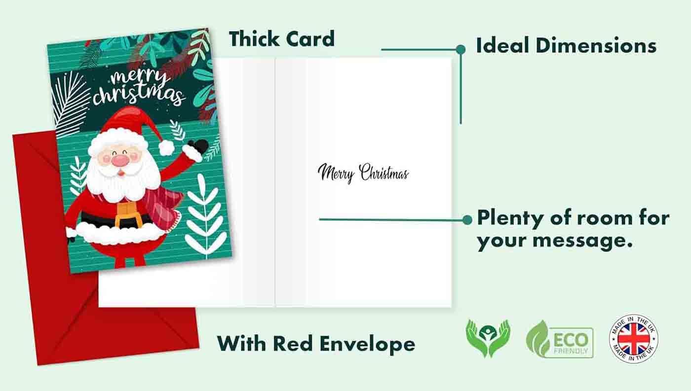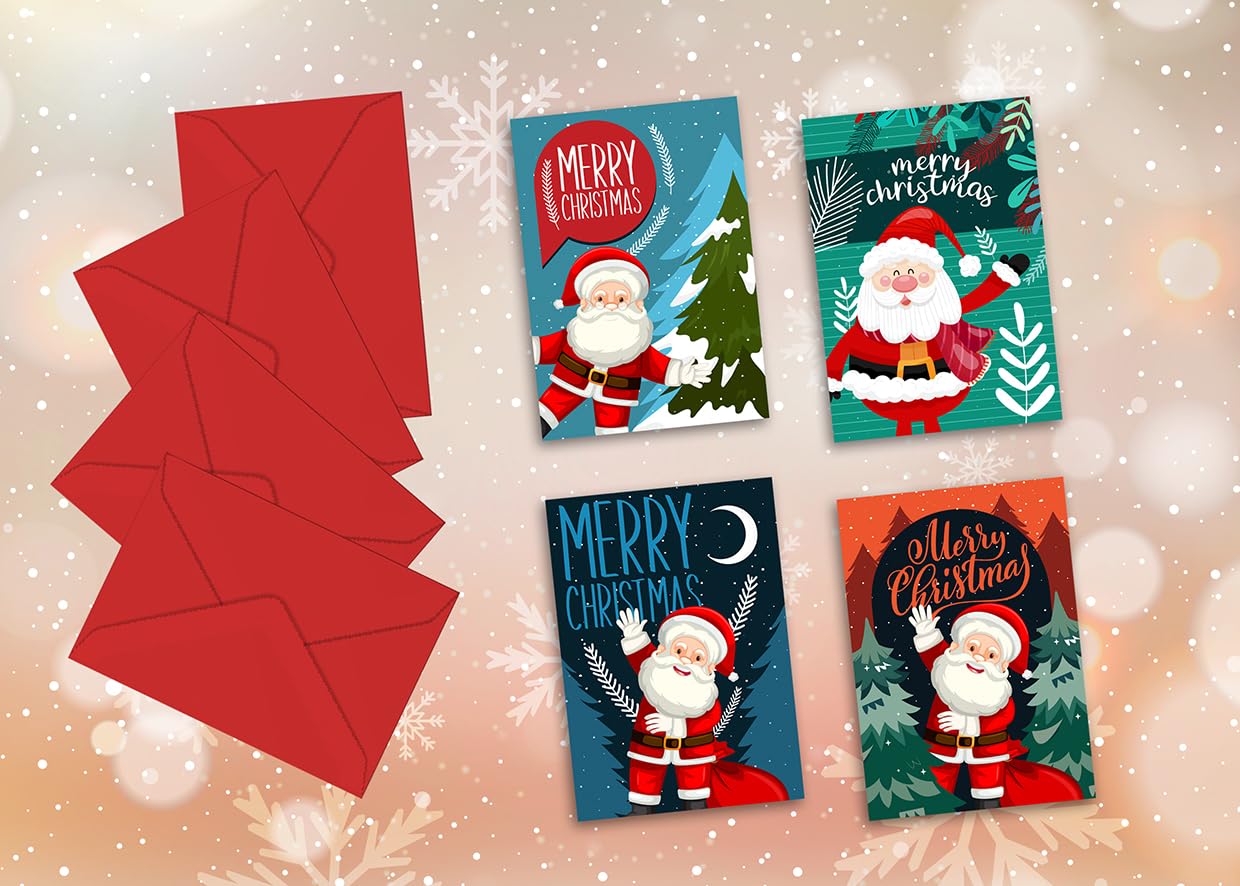 - š (PACKAGE): Multipack of 12 Premium Santa cards with red envelopes ready to send to your family, friends, and loved ones this Christmas.