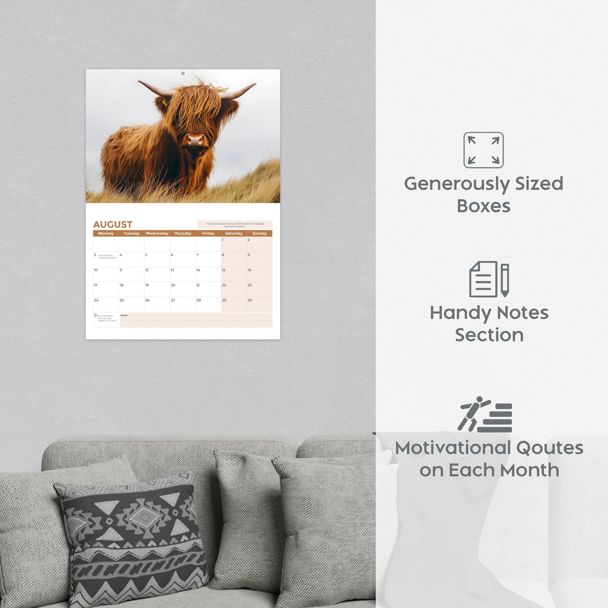 - š HIGHLAND COWS CALENDAR 2026: Celebrate the charm of Highland cows with this calendar, featuring a delightful new design each month. Easy to use and practical, this wall calendar brings character and organisation to your year.
