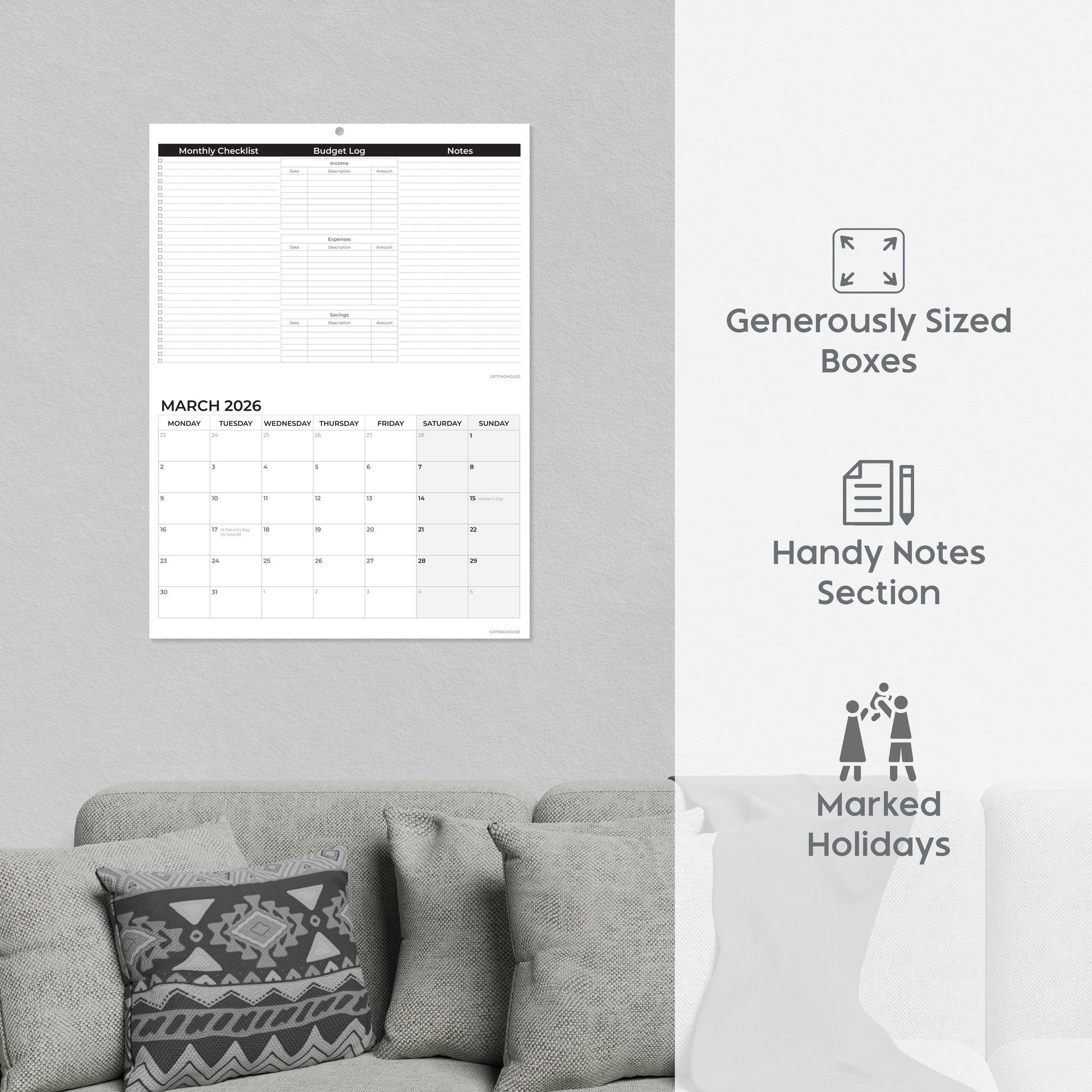 2026 Calendar ā Wall Calendar UK ā A3 When Open ā January to December 2026 Month-to-View Planner with Monthly Checklist, Budget Log & Notes ā Made in the UK