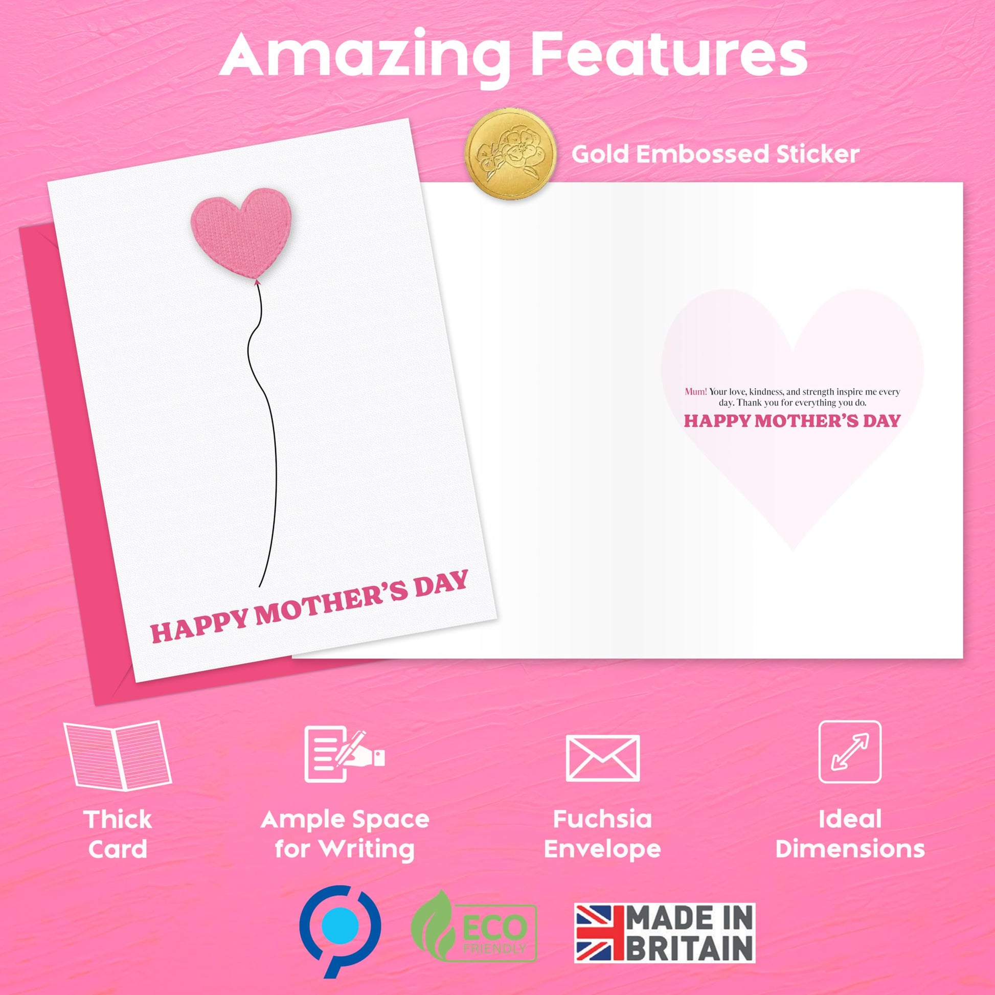 - š©· ELEGANT 3D HEART MOTHERS DAY CARD ā Giftinghouse presents a beautiful card like your mother that is adorned with a pink padded heart for adding a charming touch. Moreover, with its heartfelt yet straightforward design, it offers a minimal and perfect way to express love on Mother's Day.