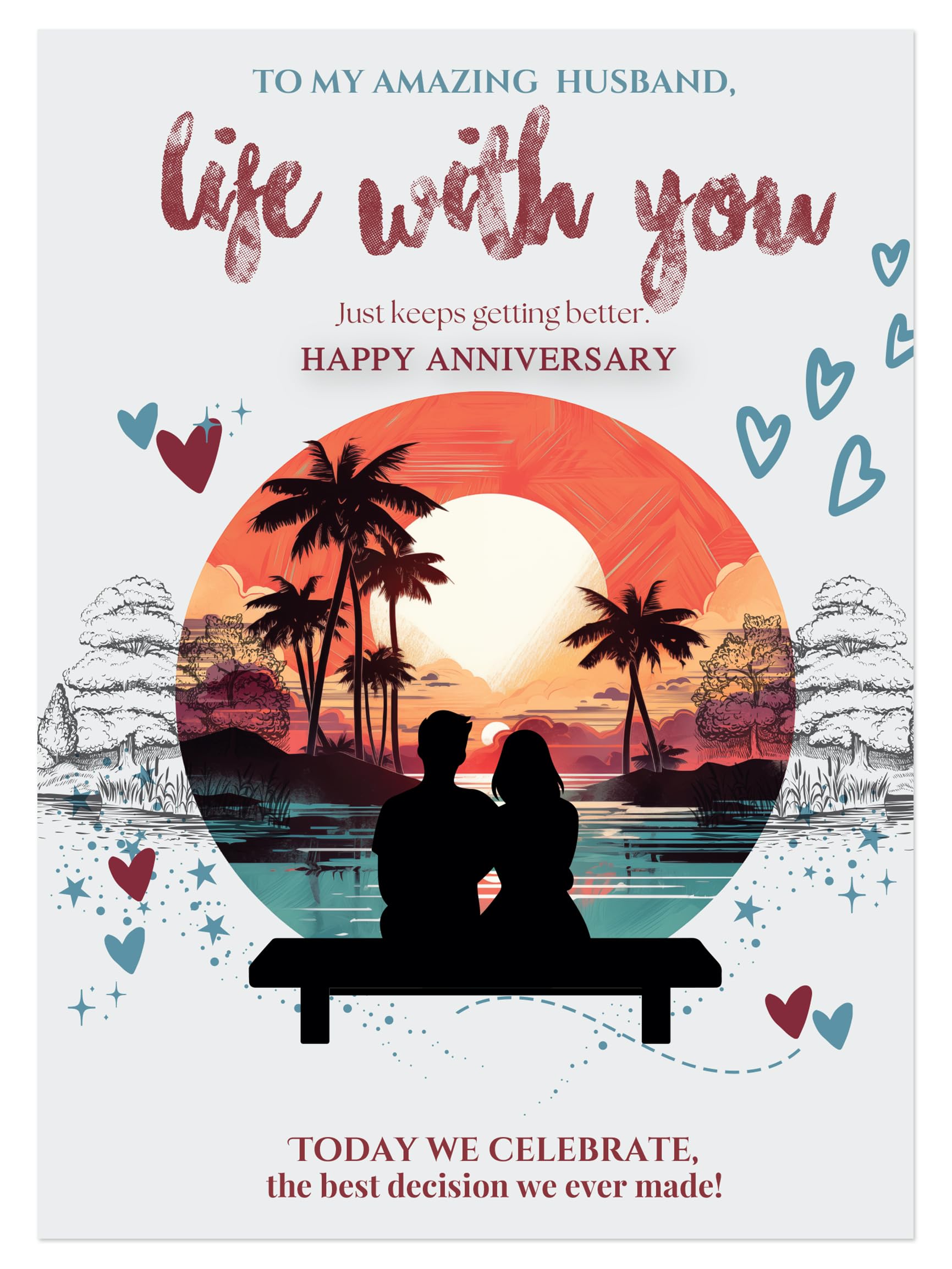 - š PREMIUM HUSBAND ANNIVERSARY CARD: Feel the special touch of our premium Husband Anniversary Card from your wife, made just for you to show your love. Adorned with a Traditional text-based design and comes with an envelope. It's the perfect way to say thanks and show how much you care for your wonderful husband.